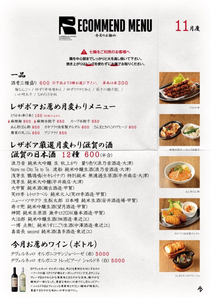 0111月2025/12/31 Nov. Monthly Menu 月変わりのメニューを11月度へ更新いたしました。 Share on Facebook Share Share on TwitterTweet Share on Pinterest Share Share on LinkedIn Share Share on Digg Share