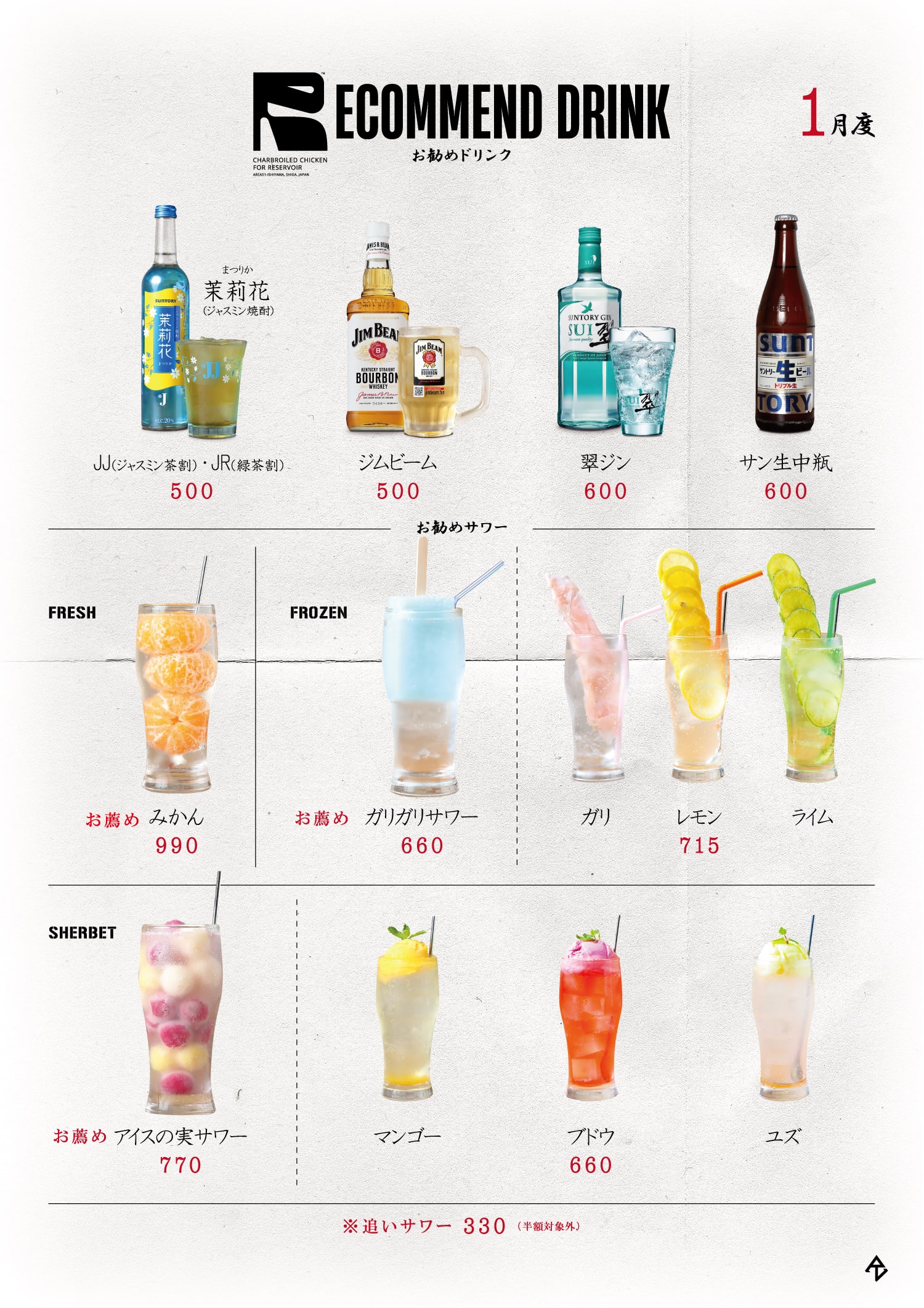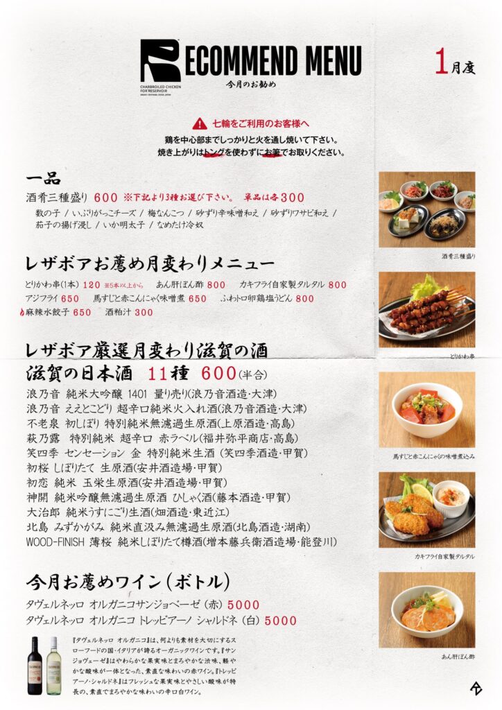 011月2025/12/31 Jan. Monthly Menu 新年あけましておめでとうございます。本年もRESERVOIRをよろしくお願いいたします。 月変わりのメニューを1月度へ更新いたしました。